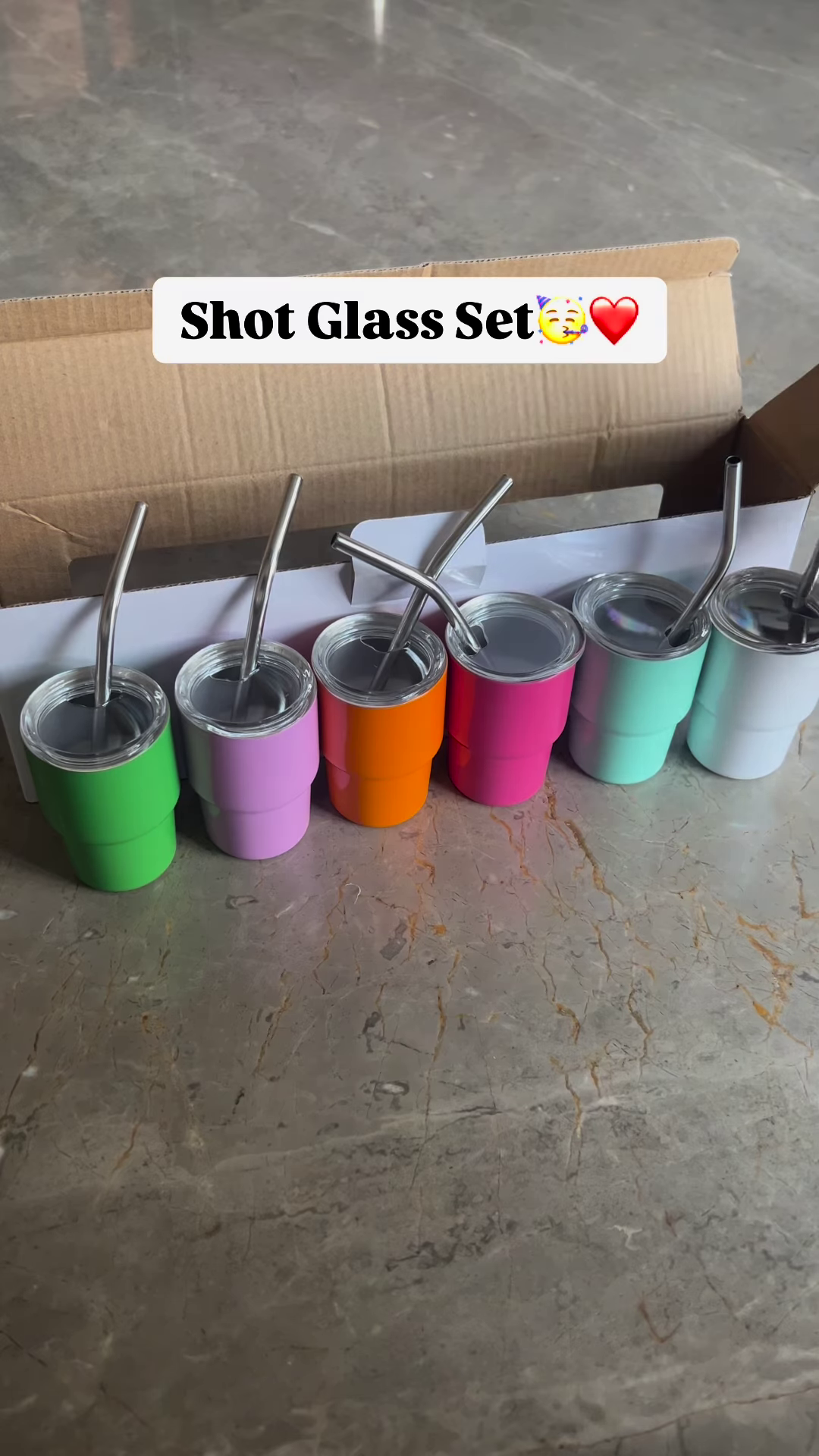 Colorful Mini Stainless Steel Tumbler Shot Glass Set with Straws and Lids