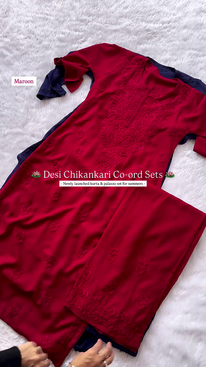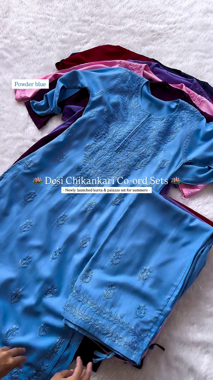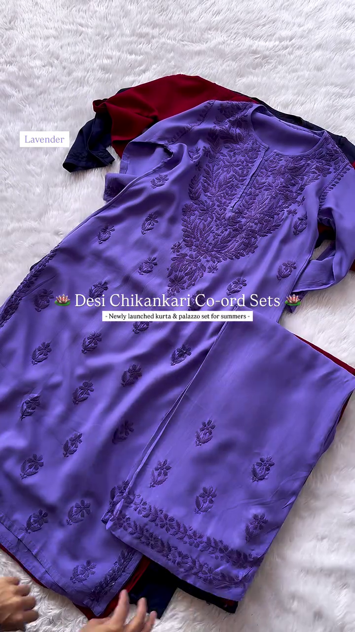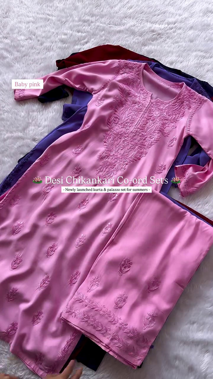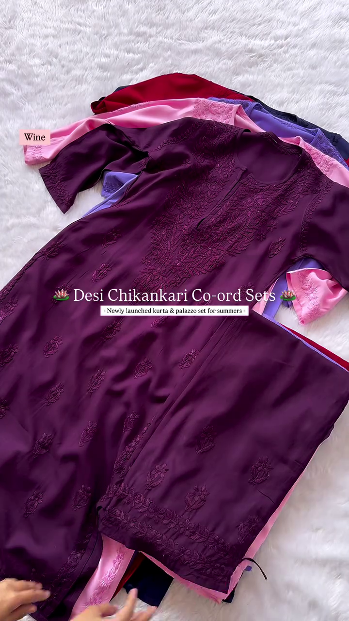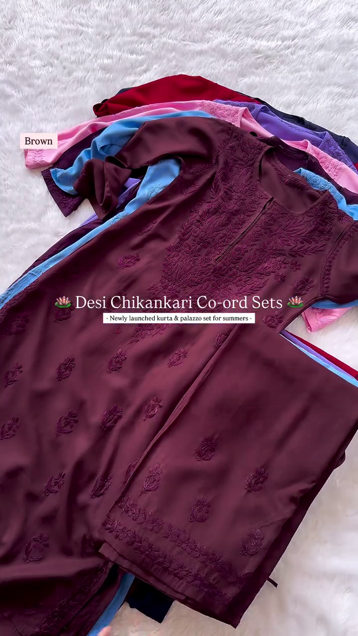 Elegant Chikankari Kurta & Palazzo Co-ord Set for Summer – Traditional Desi Look (6 Colors)