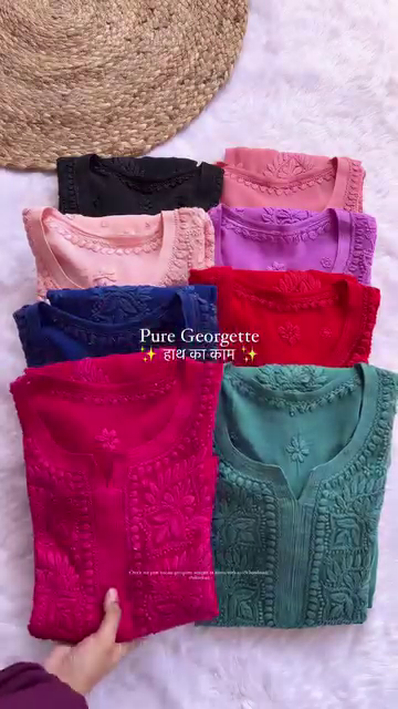 Elegant Pure Georgette Chikankari Kurtis – Hand Embroidered Beauty in 8 Rich Colors