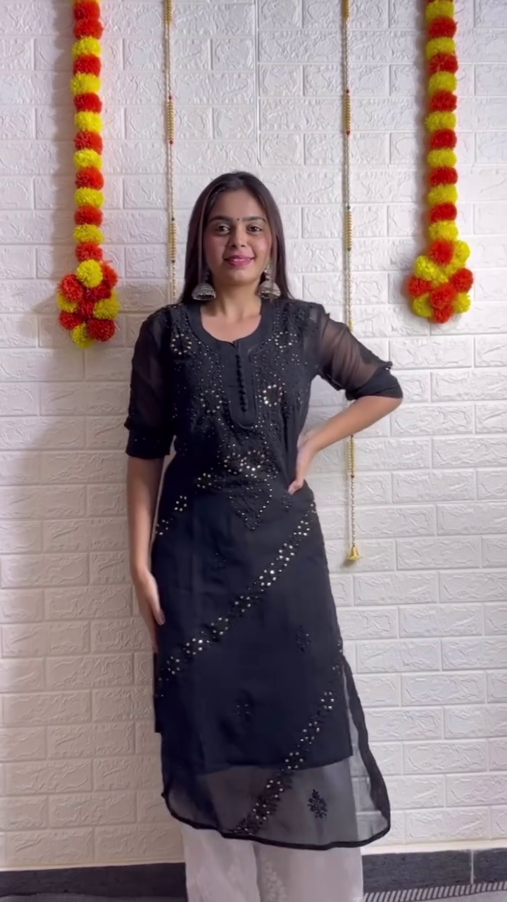 Beautiful Chikankari embroidery with hand mirror work accents