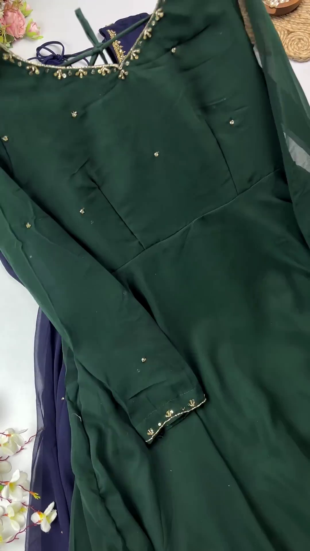 Forest Green Anarkali with Scalloped Zari Detailing