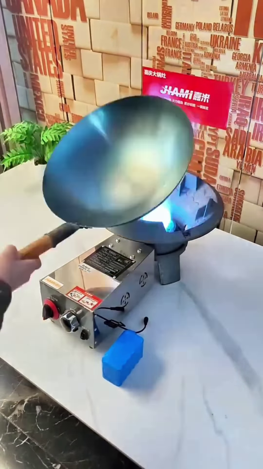 One of the unique features of this setup is its versatility. While it is built for professional performance, its compact and modular design makes it suitable for outdoor catering, food stalls, or even a specialized home outdoor kitchen. The burner can be powered by standard gas tanks, making it a portable solution for events. The controls are intuitive, featuring a large, easy-to-turn knob that provides immediate adjustment of the gas flow. This allows the chef to react quickly to the needs of the dish, preventing burning while maintaining the high heat required for authentic stir-fry techniques.
