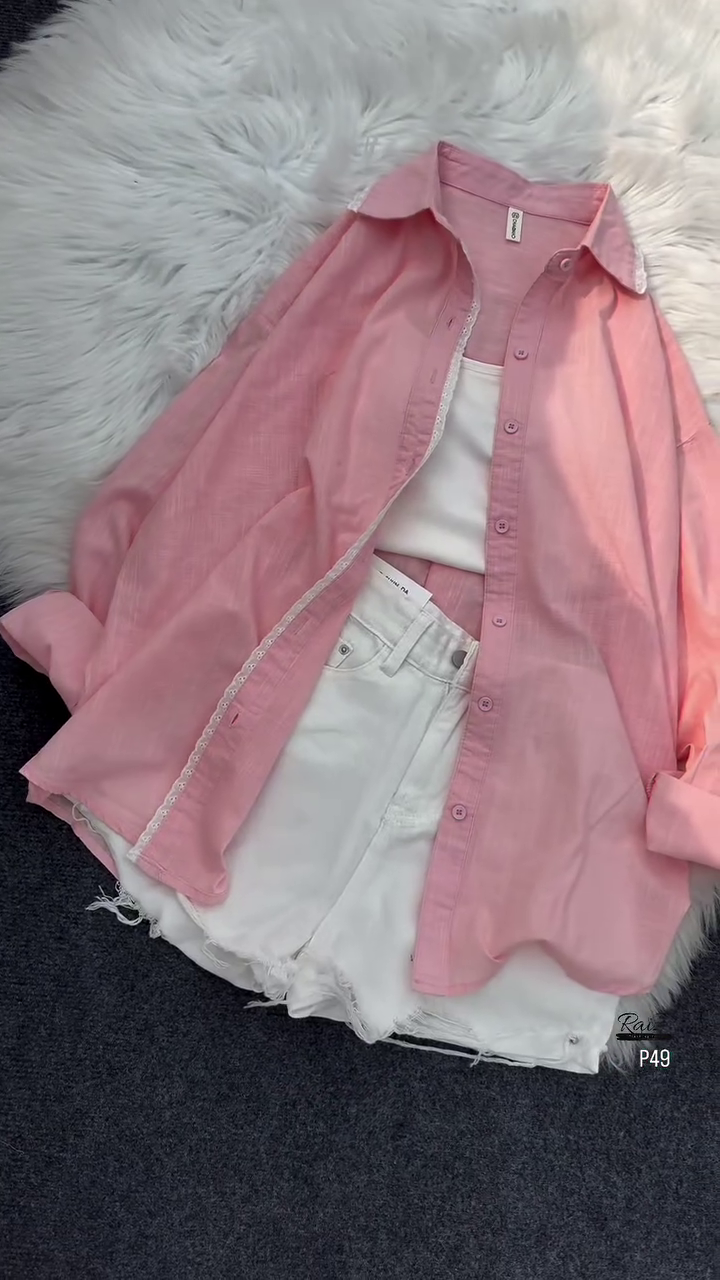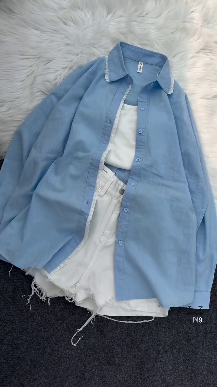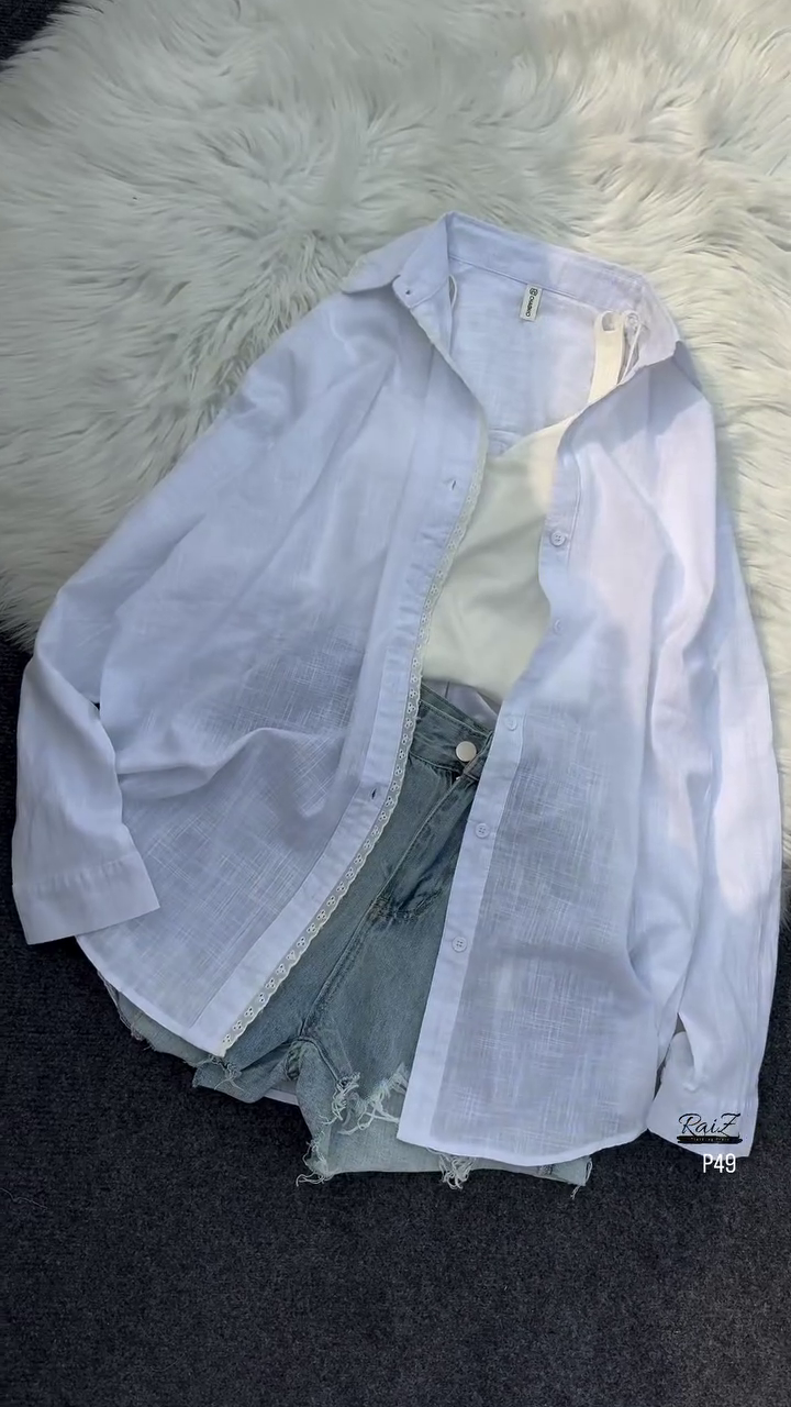 Crafted from breathable and lightweight cotton, the shirt drapes beautifully for that laid-back, relaxed silhouette. The inner top is snug and minimal, while the frayed-edge white shorts add a bold and trendy twist to the ensemble. Together, the set offers a balanced fusion of minimalism, comfort, and edge—perfect for the modern trendsetter.