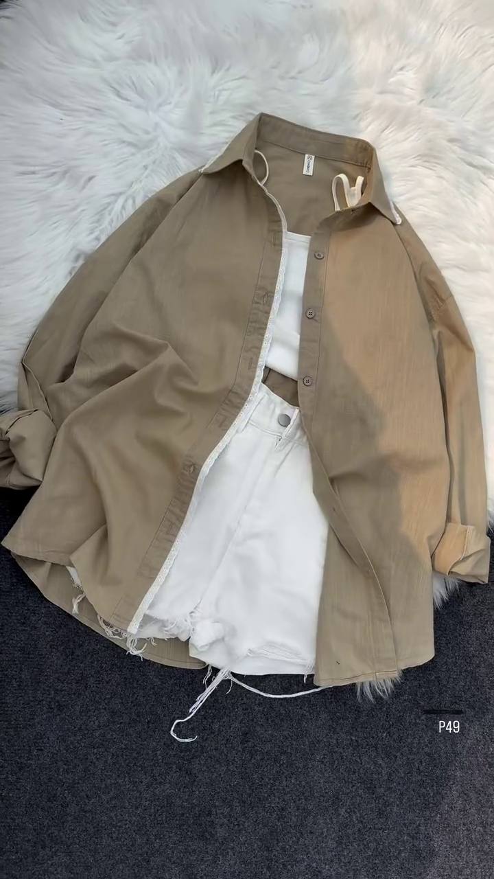 Oversized Cotton Shirt with Inner and Shorts – Neutral Beige Co-ord Set (Available in 5 Colors)