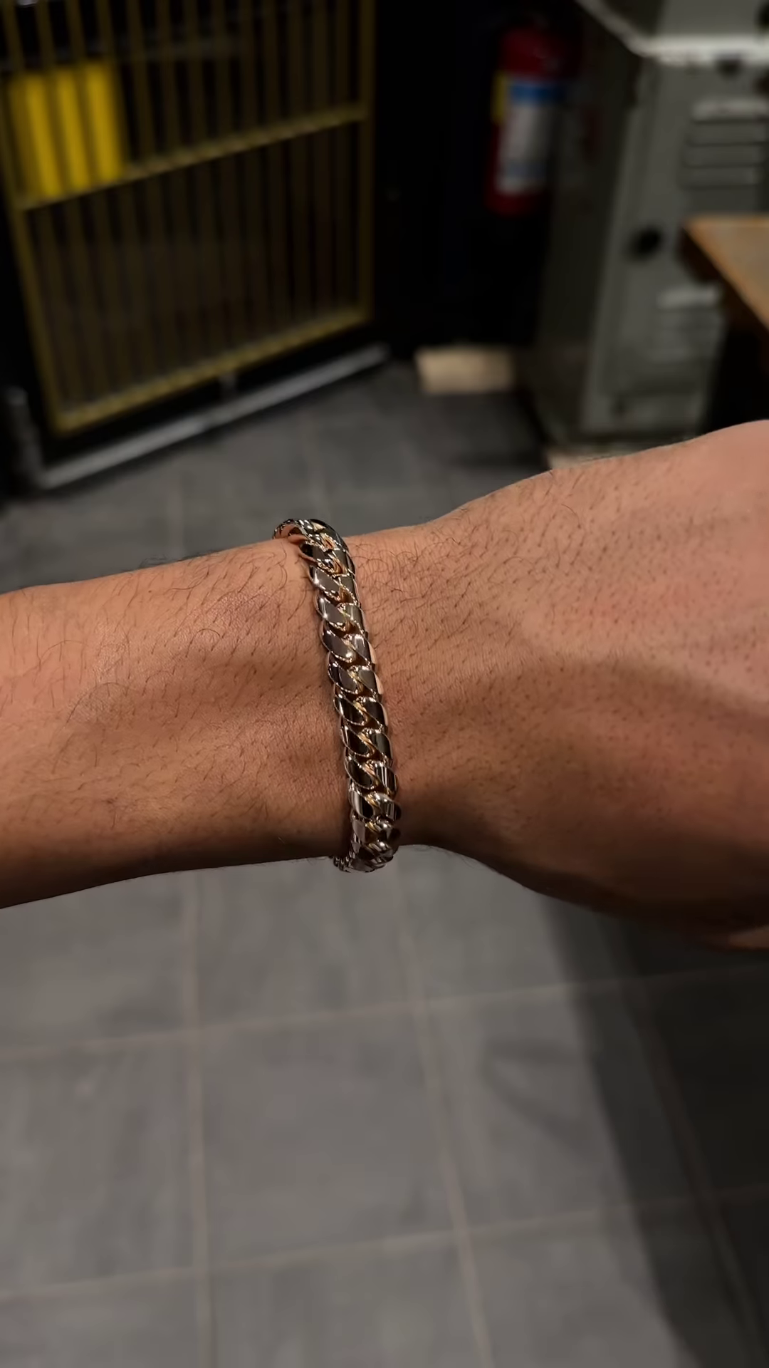 In conclusion, this bold 14k rose gold Cuban link bracelet with its natural brown VS diamond-encrusted clasp is a luxurious and distinctive accessory. Its robust design, warm metal, and unique diamond accents make it a truly exceptional piece of jewelry.