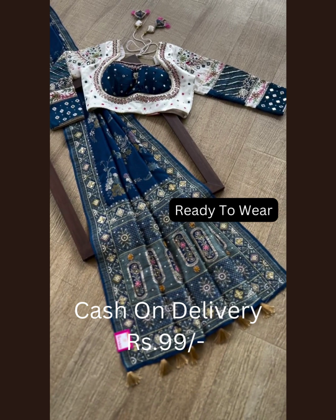 Deep Indigo Palette: Crafted in a sophisticated, dark indigo-blue fabric that provides a regal and timeless backdrop for intricate detailing.