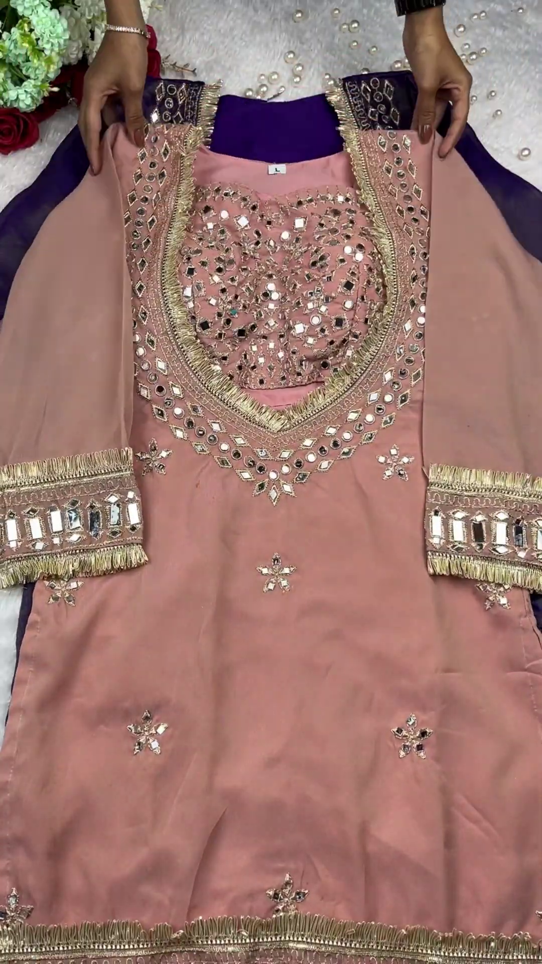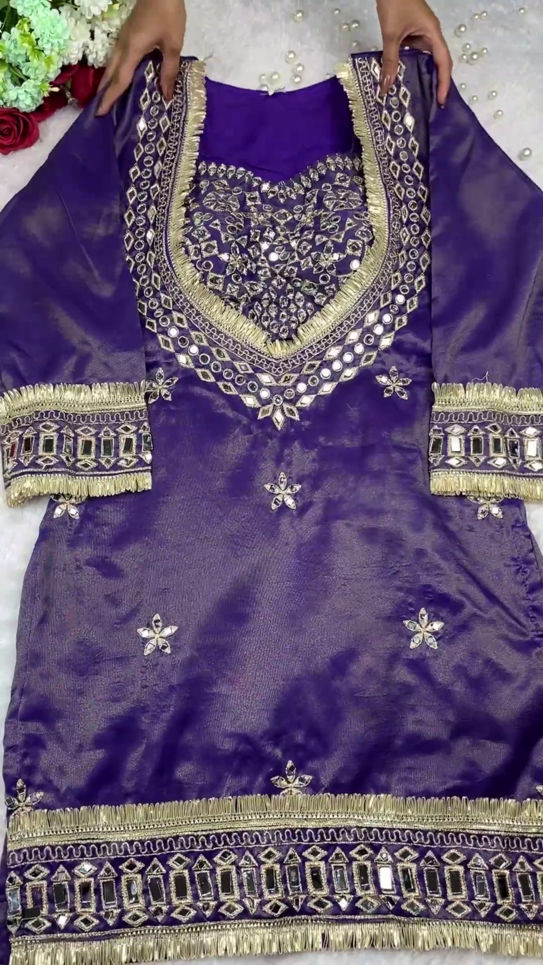 Elevate your ethnic wardrobe with this majestic purple designer kurti. Meticulously crafted for a regal silhouette, this piece features high-impact mirror-work and gold detailing, making it an ideal choice for grand festive celebrations and evening soirées.