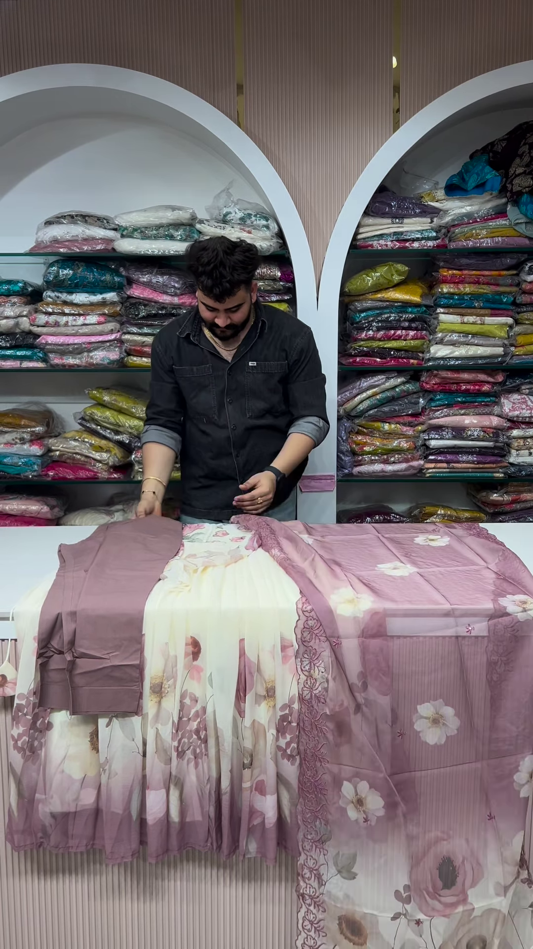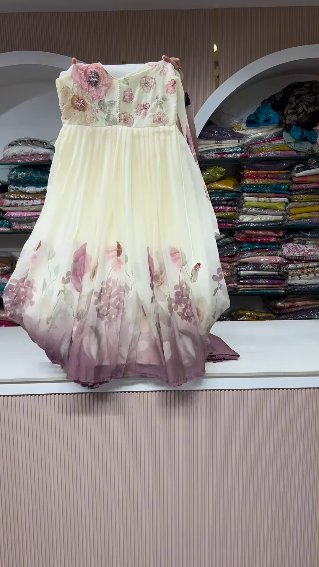 This mauve and cream set is a versatile addition to any ethnic wardrobe. To style this look, consider pairing it with minimalist silver jewelry and a mauve-toned clutch. The neutral yet vibrant palette allows for various makeup choices, from a natural dewy glow to a bold plum lip. For footwear, block heels in a nude or mauve shade will elongate the silhouette. Every detail of this garment, from the reinforced seams to the high-density sequin work, reflects a commitment to boutique excellence and modern ethnic style.