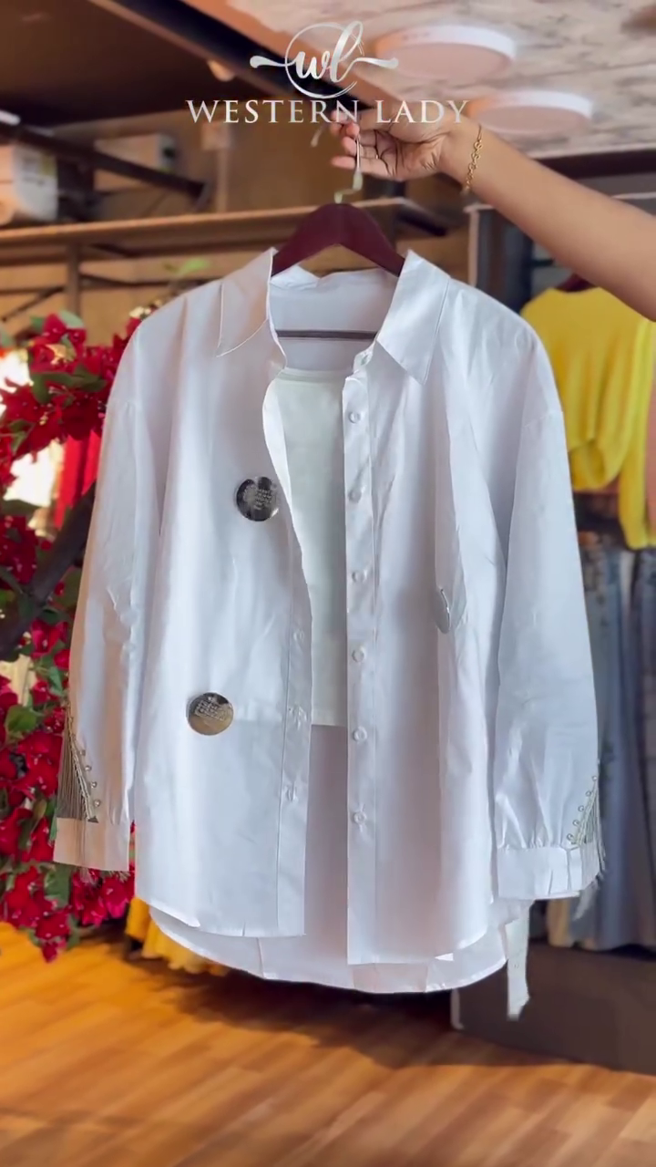 Studded Fringe Shirt in Metallic White