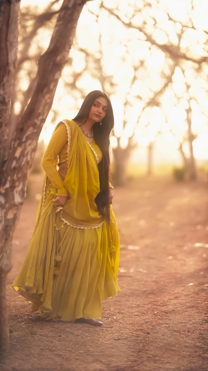 Photographed against a dreamy golden-hour backdrop, the outfit mirrors the beauty of nature and tradition in perfect harmony—an outfit that’s as photogenic as it is comfortable.