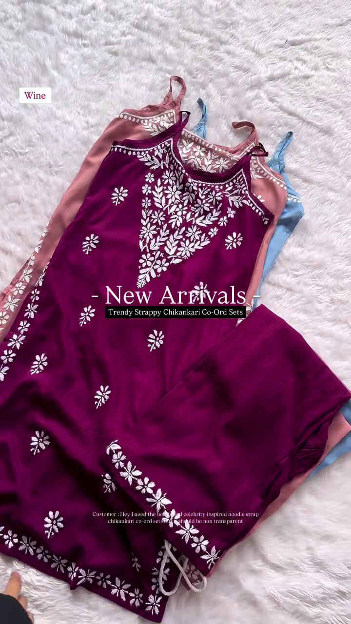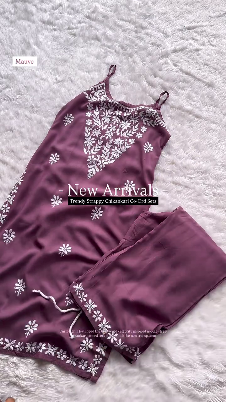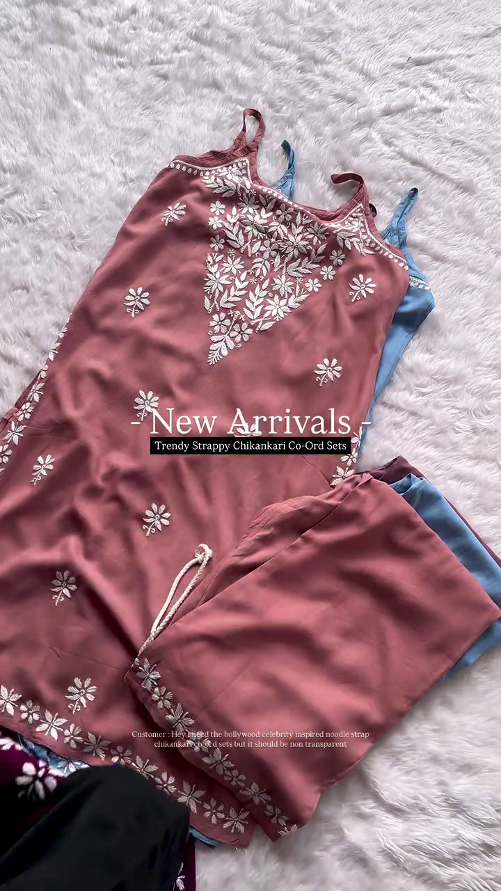 Trendy Mauve Chikankari Co-Ord Set – Strappy Noodle Strap Kurti with Matching Pants (8 Colors)
