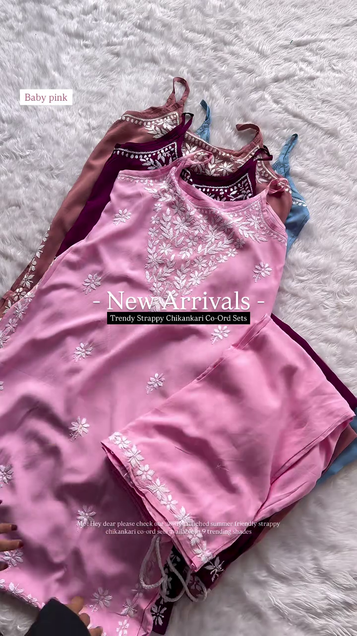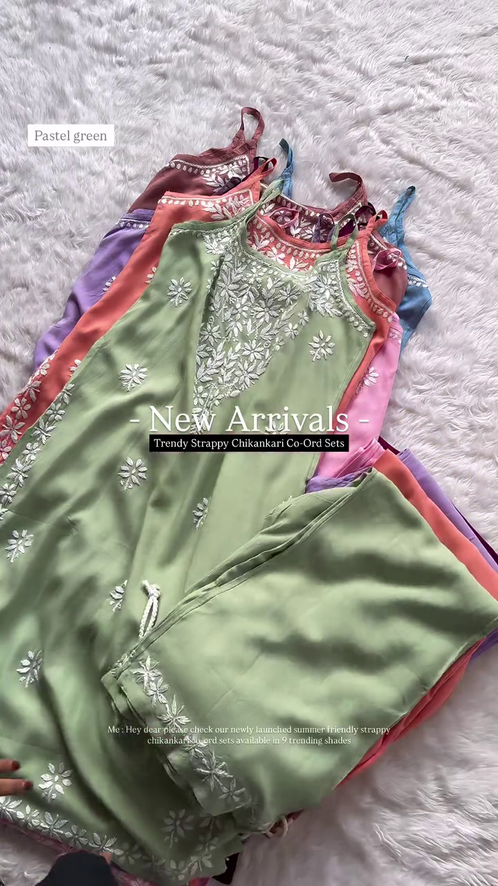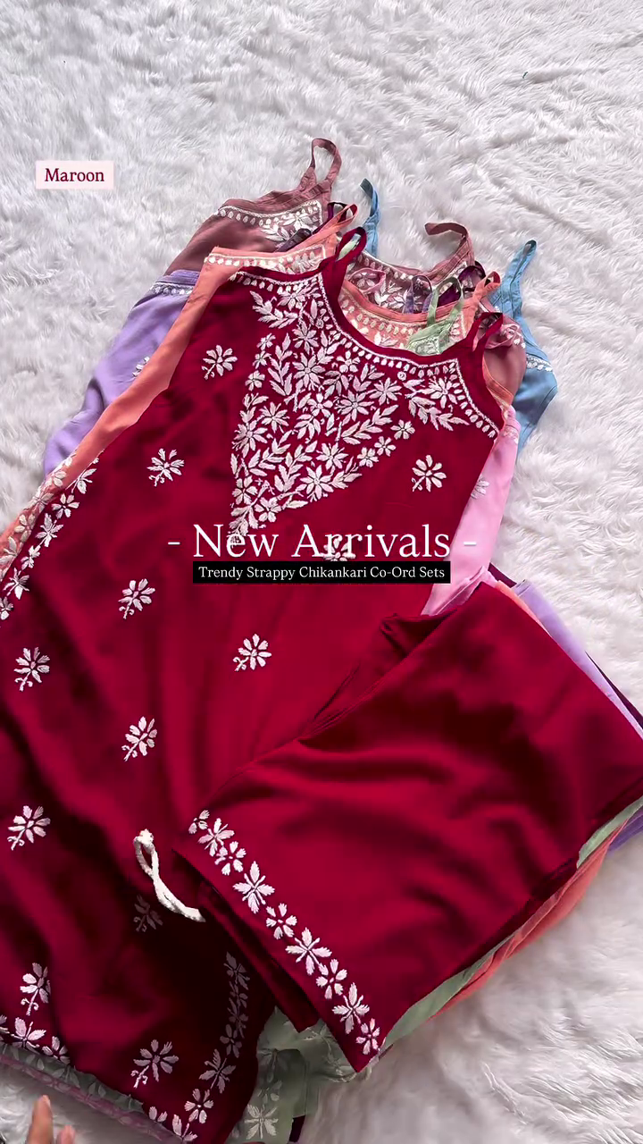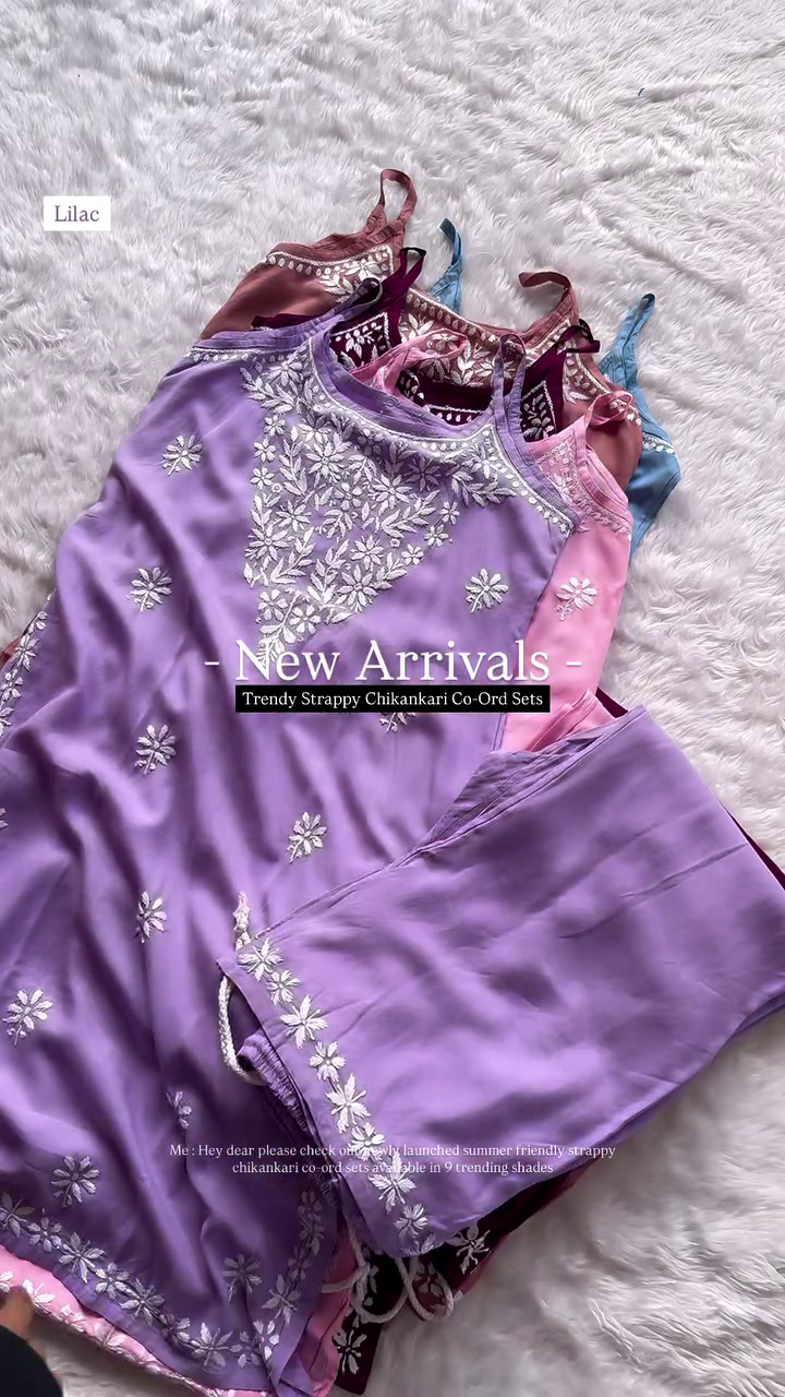 Trendy Mauve Chikankari Co-Ord Set – Strappy Noodle Strap Kurti with Matching Pants (8 Colors)