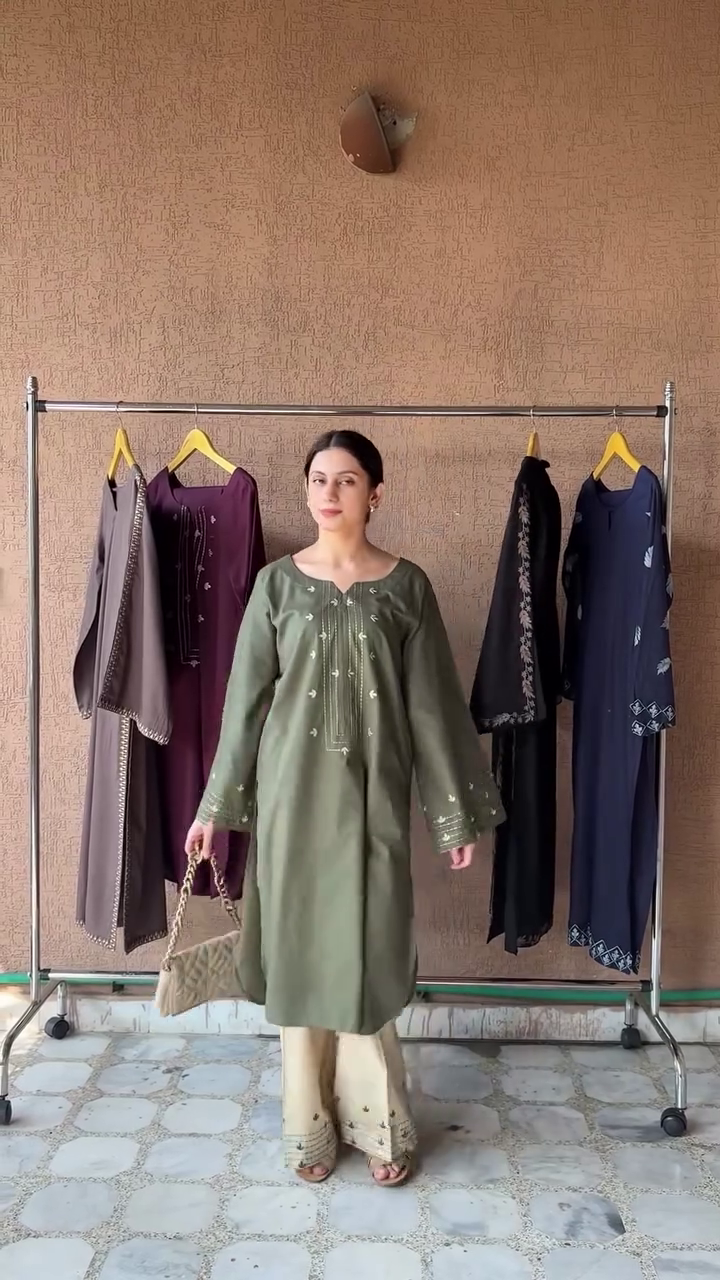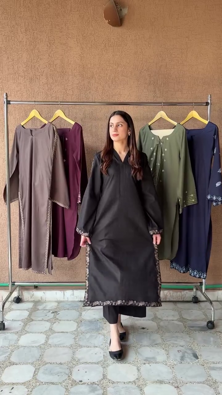 What makes this ensemble even more versatile is the range of four rich color options – black, maroon, olive green, and navy blue – each with its own distinctive embroidery work. Whether you’re pairing it with cigarette pants for a clean, modern look or with palazzos for a more ethnic feel, this kurta easily adapts to your styling preferences.