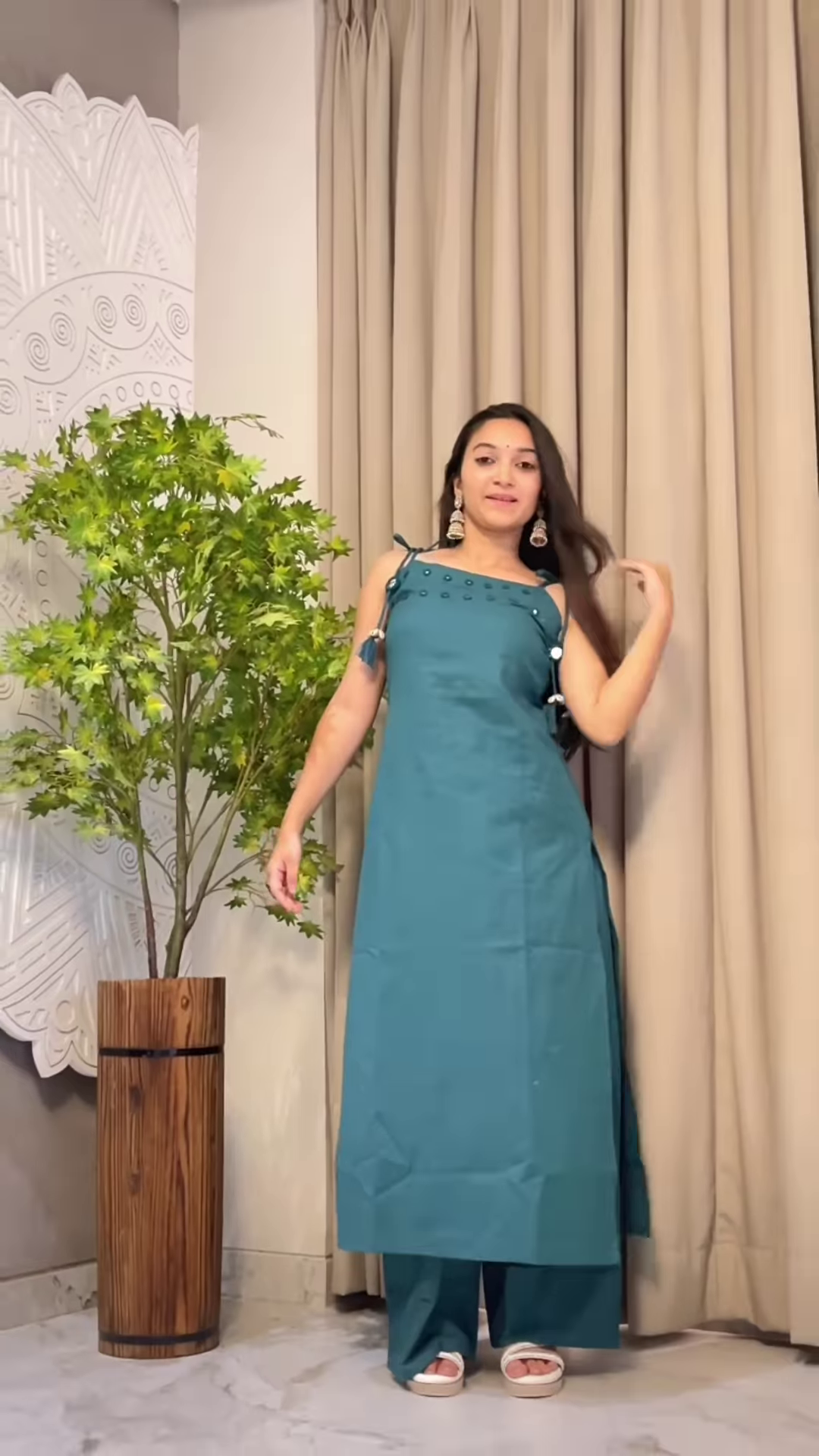 Women’s Teal Sleeveless Kurta Pant Set with Tassel Straps – Elegant Indo-Western Ethnic Ensemble